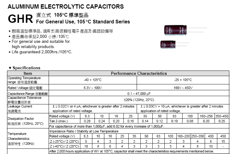 105°C標準型品 GHR系列