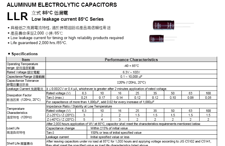 «105°C低漏電品 LLH系列
