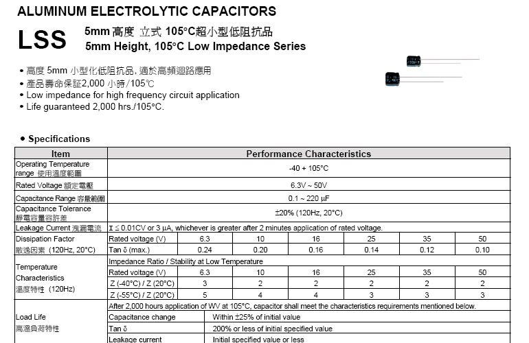 «105°C 小型化 高度5mm 超低阻抗 USS系列