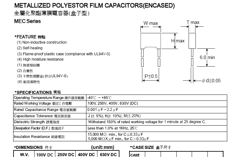 金屬化聚酯薄膜電容器(小盒型) MEB系列»