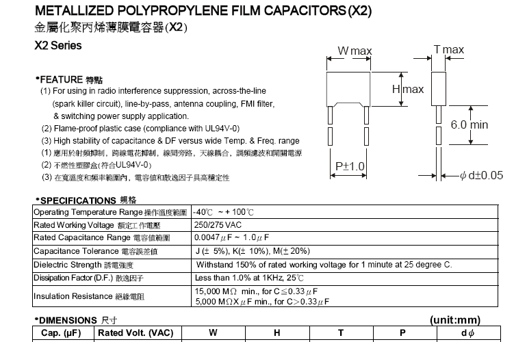 安規金屬化聚丙烯薄膜電容器(AC) X1系列»